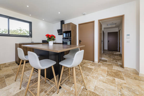 The living areas of Ducaussa are stylish and comfortable and also offer all modern amenities for a great stay: a nice living room, a fully equipped kitchen with island annex bar and a spacious dining table for a shared breakfast. There are 2 bedrooms with double beds and 1 bedroom with 2 single beds. A modern bathroom made of beautiful natural stones.