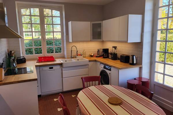 There is a cozy living room with a working fireplace, a dining room and a beautiful library. The kitchen is new and functional. A large swimming pool (12x6), carefully chosen garden furniture, a plancha, hammocks and a ping-pong table complete the holiday equipment. You and your family/friends will spend an excellent holiday in this beautiful place! Outside July/August price is based on max 8 ps, every extra person pays a little extra...