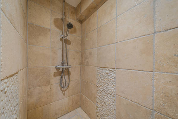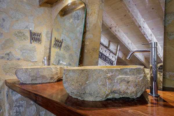 The design of the bathroom with these beautiful natural stone washbasins and totally in the style of the house, the well-designed shower: it is the work of a high-level interior designer. The beds are very comfortable with giant beds. The exterior is remarkably designed with different places to eat, in the sun or in the shade.