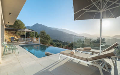 A warm welcome. A very well-equipped house. A beautiful terrace where we enjoyed the view and sunsets. A heated pool that resembles an infinity pool because of the same view. It's quite remote, though; grocery shopping easily takes an hour and a half by c..