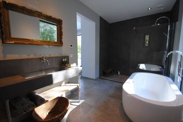 Excepté 2/3 finitions un peu abîmées (comme l'évier de la suite parentale) tout était parfait (note de FV : cela sera réparé bientôt). L'immense baie vitrée était un peu difficile au début mais nous nous sommes vite habitué. La terrasse, la piscine, le jacuzzi et la vue sont vraiment les points forts du gîte. C'était superbe et très agréable, particulièrement les couchés de soleil dans le jacuzzi. Tous les matins le golf soufflait les feuilles pendant de longues heures... Internet était très bien, sauf pour youtube sur la TV (je ne sais pas pourquoi).
