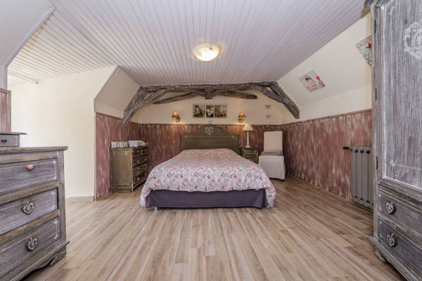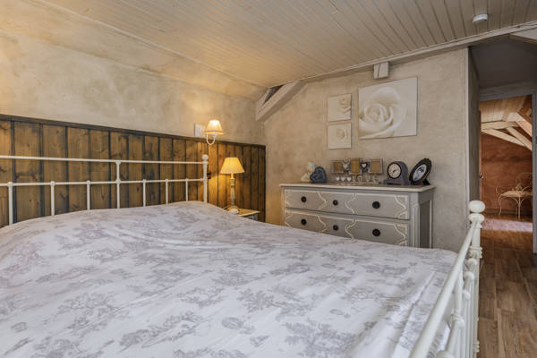 Il y a trois salles de bains avec douche et toilettes (deux au rez-de-chaussée et une au premier étage. Au total, il y a 4 chambres à coucher et une mezzanine (au-dessus de la salle à manger). Une chambre au rez-de-chaussée avec deux lits doubles, sur la mezzanine, il y a un lit double.) Enfin, il y a trois chambres (chacune avec un lit double) au premier étage, dont deux sont connectées l'une à l'autre, ce qui ne les rend pas entièrement privées.