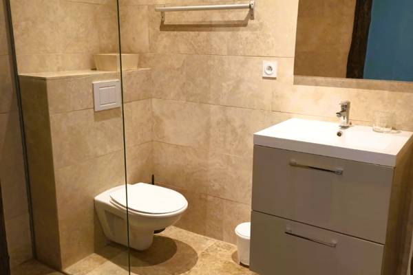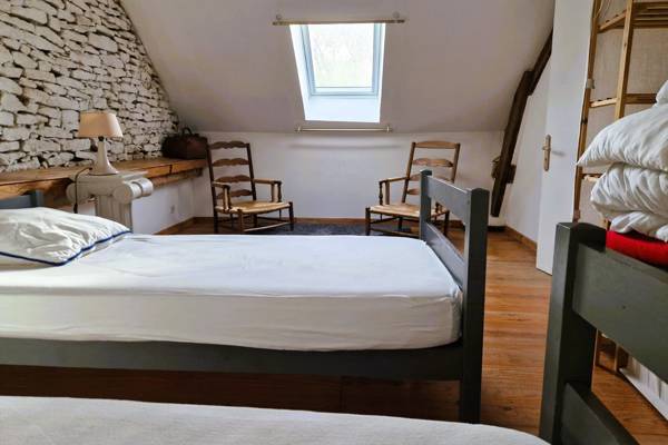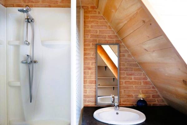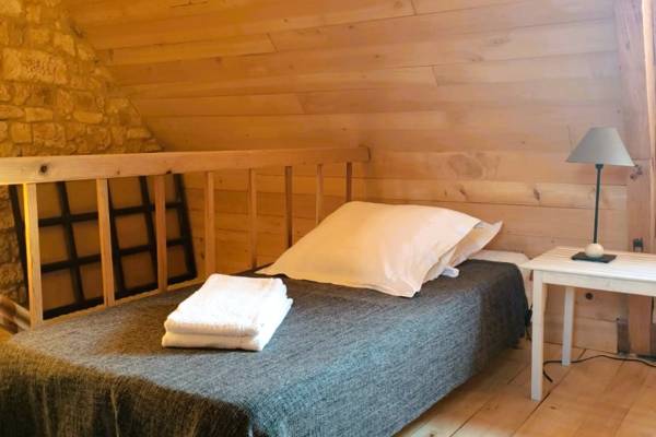 Au rez-de-chaussée se trouve la première chambre avec un lit double lits jumeaux (2 x 0.90) et une salle de bain avec douche et WC. La deuxième salle de bain dispose d'une cabine de douche et de doubles vasques et baignoire. Il y a des toilettes séparées. Au premier étage se trouve la salle d'étude (ouverte) avec un lit simple. Une deuxième chambre avec un lit jumeaux (2 x 0.90), la troisième chambre avec trois lits simples. Sur cette première étage il y a une salle de bain avec douche et des toilettes séparées. Au deuxième étage: une chambre avec un lit double et sa propre salle de douche et une chambre avec deux lits simplses. Lit bébé disponible.