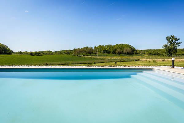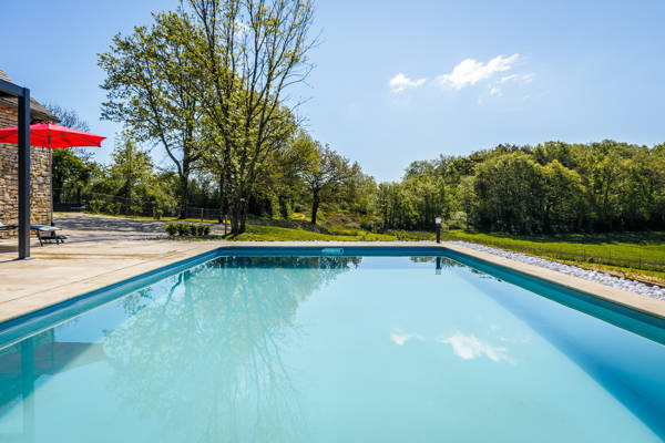 La piscine était magnifique et propre (le carrelage autour était d'une belle matière). Et avec la vue – nous avons même eu la visite de cerfs – nous reviendrons sans hésiter.