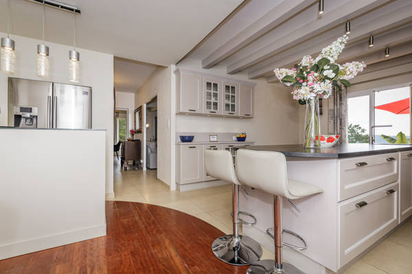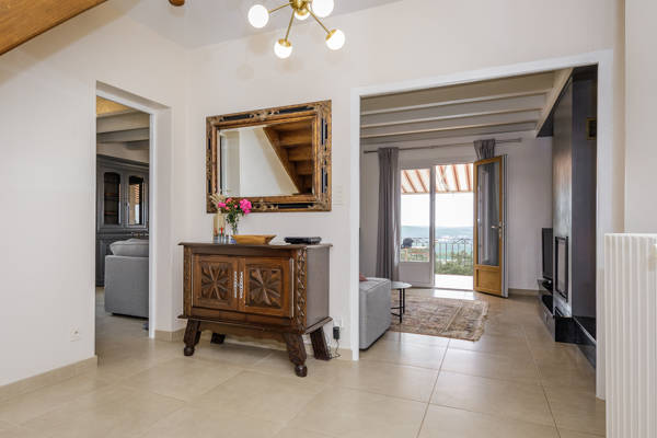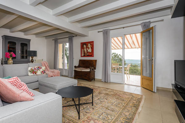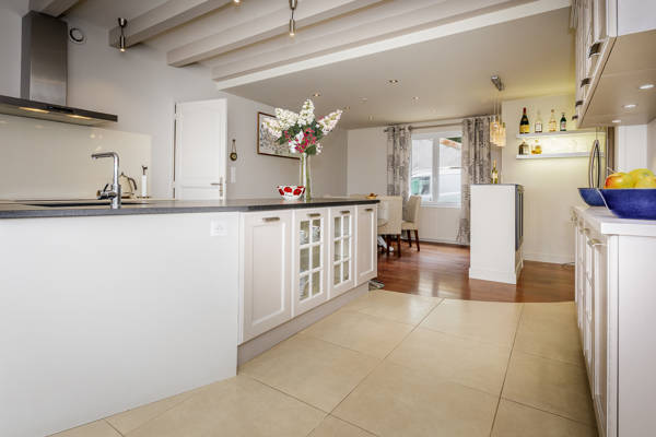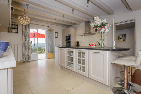 Il y a aussi une cuisine moderne bien équipée avec espace îlot/bar. Depuis la cuisine et le salon, vous pouvez accéder à la terrasse ensoleillée, d'où vous pourrez profiter d'une vue d'une beauté sans précédent sur la Vallée de la Dordogne.
