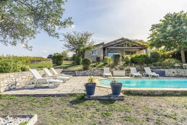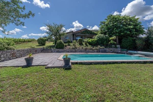Cette belle maison de vacances très charmante est située dans un hameau calme surplombant les vignes et dispose d'un beau jardin bien établi avec une grande terrasse couverte et avec la piscine privée en contrebas. Vigneferme est idéal pour les groupes familiaux ou groupes d'amis avec 4 chambres et 2 salles de bain. De plus il y a un petit douillet avec un canapé-lit, idéal pour les ados. En dehors de juillet et aout le prix de la maison est basé sur max 4 ps. Chien admis sur demande.