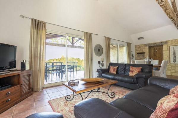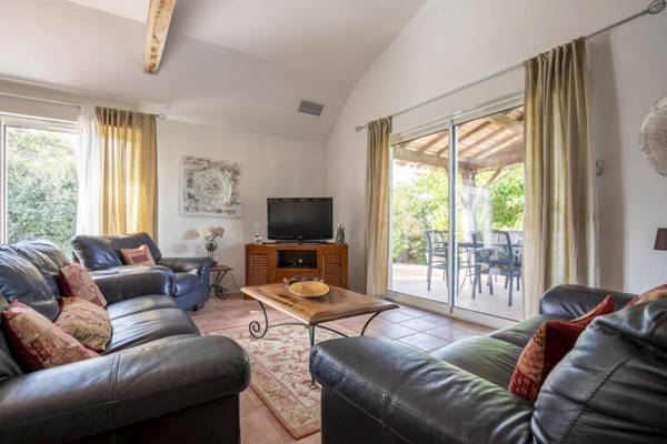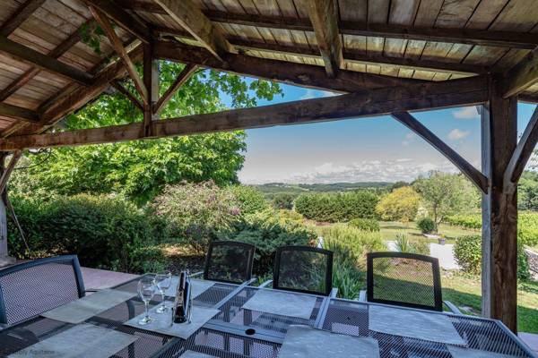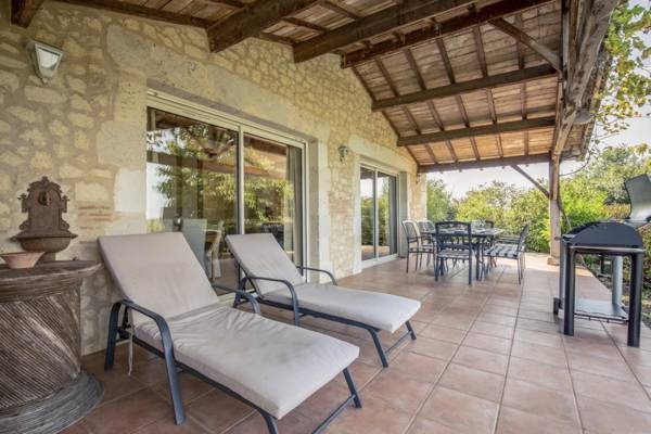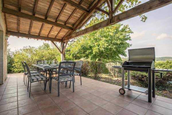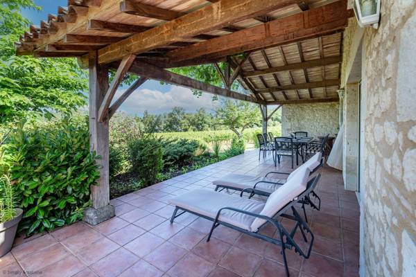 Vigneferme a été conçue pour tirer la meilleure partie de la vie en plein air avec une fantastique terrasse couverte qui s'ouvre depuis le salon et s'étend sur toute la longueur de la maison. À une extrémité de la terrasse se trouve la salle à manger, puis le reste de la terrasse dispose de sièges confortables. La terrasse donne sur le jardin paysager et la piscine privée. Il y a des petites terrasses supplémentaires autour de la propriété ainsi qu'une pelouse pour les jeux de balle. Il y a un grand barbecue à charbon pour les clients. Il y a aussi une table de ping-pong. Autour de la piscine, il y a 8 fauteuils inclinables et de nombreuses terrasses.