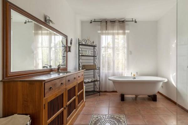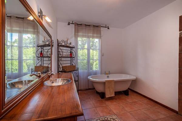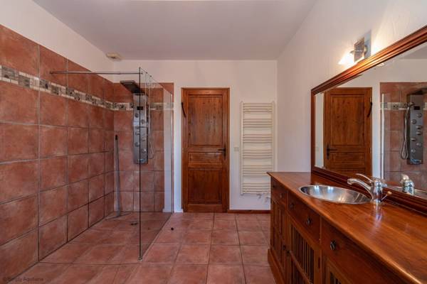 La chambre 4 est une chambre king size. Les chambres 2, 3 et 4 partagent la grande salle de bain familiale qui a une grande baignoire sur pieds et une grande douche à l'italienne. Il y a un WC séparé.