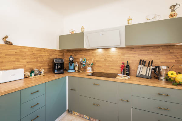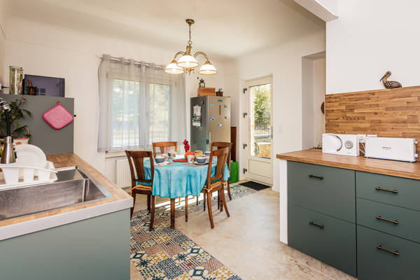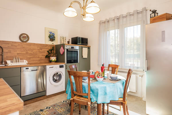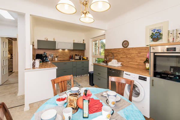 À l’intérieur, vous trouverez un salon chaleureux décoré avec goût, doté d’une cheminée et d’une petite bibliothèque pour des soirées relaxantes. La cuisine moderne est entièrement équipée : lave-vaisselle, four, micro-ondes, réfrigérateur-congélateur, machine à laver, cafetières Nespresso et Senseo, bouilloire et matériel de repassage. Les chambres sont spacieuses et disposent de lits confortables de différentes tailles, allant d’un lit king-size (200x200) à des combinaisons de lits doubles et simples. Grâce à la climatisation dans toutes les pièces, la villa reste agréable même lors des journées d’été les plus chaudes. Trois salles de bain et deux toilettes supplémentaires garantissent intimité et confort pour tous les occupants.
