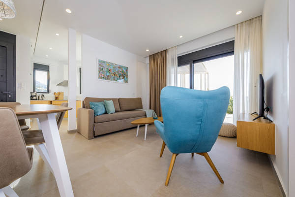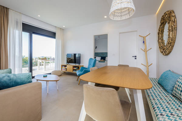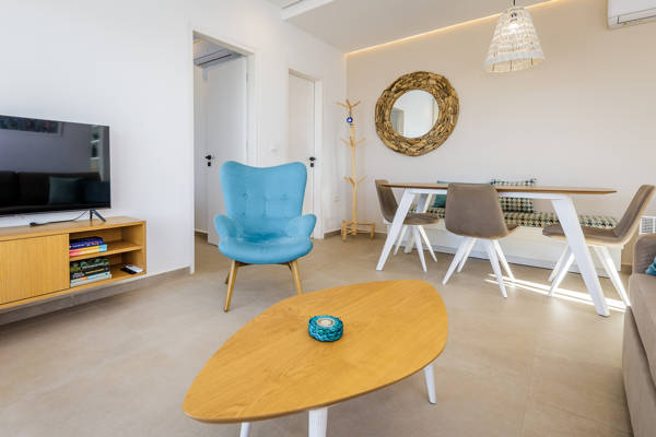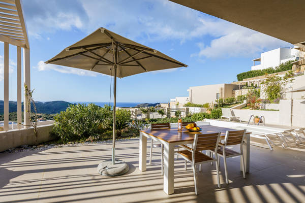 Nous nous sommes sentis très à l'aise dans le logement. Les chambres sont très belles, neuves, propres et parfaitement équipées. Il est intéressant de savoir qu'une chambre avec salle de bain est située dans un bungalow séparé. Comme nous étions deux couples, cette disposition des pièces était idéale pour nous. La terrasse est très spacieuse et la vue est fantastique. Il y a une grande taverne à distance de marche, où nous aimons souvent dîner. Depuis le logement, vous avez la possibilité de rejoindre de nombreuses belles plages en quelques minutes en voiture. Ce furent de superbes vacances et nous recommandons l'endroit !