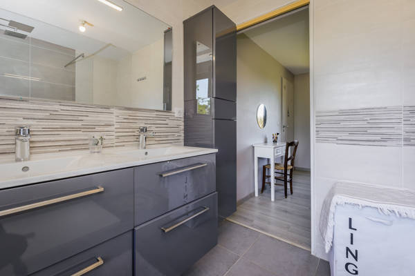 Op de begane grond van het hoofdhuis de grote woonkamer waar u in de winter de open haard kunt aansteken en waar het in de zomer heerlijk koel blijft. Aangrenzend bevindt zich de eetruimte en verderop de goed uitgeruste open keuken. Verder zijn er boven 4 ruime slaapkamers met tweepersoonsbedden en 2 badkamers waarvan één en-suite en de andere de 3 overige slaapkamers bedient. 2 Toiletten, één beneden en één boven. Er is één extra kamer met bureau, mocht je online willen werken...