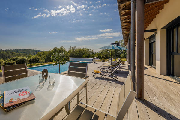 Dit ruime en luxe vakantiehuis genaamd Villa Cilaos met heerlijk verwarmd privé-zwembad is ideaal gelegen in weelderig groen in het hart van de Périgord Noir. Gelegen net buiten een klein dorpje van 800 inwoners met alle voorzieningen. Een oase van rust midden op het platteland van de Périgourdine, die u het welzijn en de rust zal bieden die u nodig heeft tijdens uw vakantie. Villa Cilaos combineert comfort, gezelligheid, rust en ontspanning.