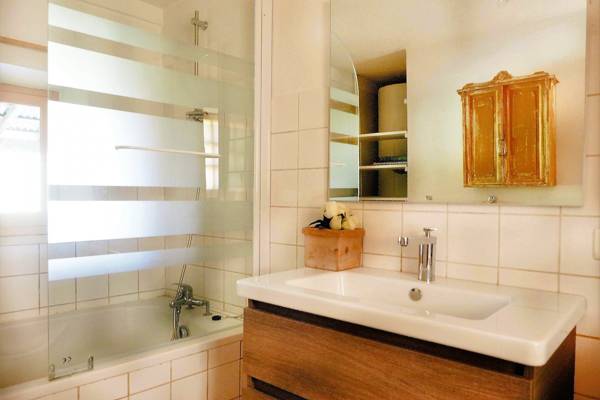 Op de begane grond bevindt zich de eerste slaapkamer met een tweepersoonsbed en een badkamer met bad en douche. De eerste verdieping heeft 2 slaapkamers. Eén slaapkamer met een tweepersoonsbed en nog een slaapkamer met een twee-persoonsbed en een extra stapelbed (deze slaapkamer is superleuk voor kinderen). Het tweepersoonsbed staat in een apart gedeelte maar er zit geen deur tussen. De badkamer is uitgerust met een toilet en een douche.