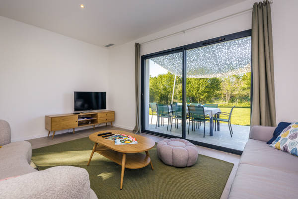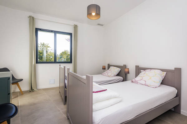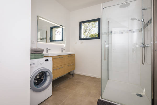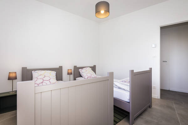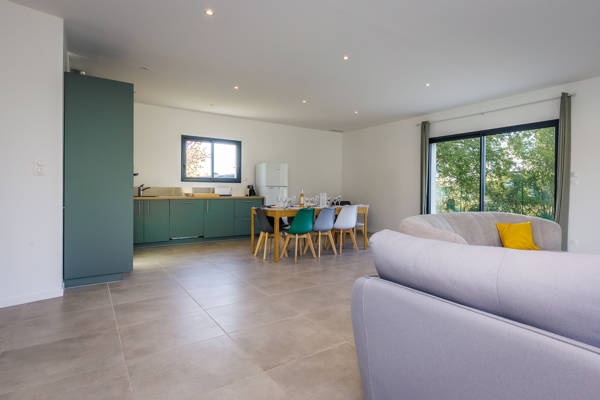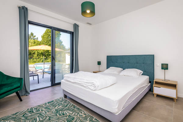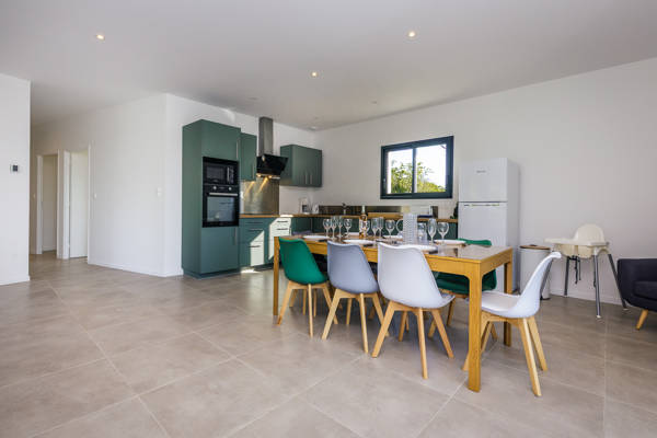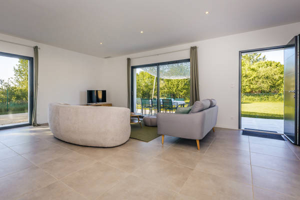 De modern ingerichte woonkamer met open keuken is licht en ruim en heeft schuifdeuren naar het terras en zwembad. Er zijn 4 slaapkamers en 2 badkamers. Drie slaapkamers hebben een bed van 160x200 en één slaapkamer heeft een badkamer en-suite met regendouche en wastafel. De andere slaapkamers delen een badkamer met regendouche en dubbele wastafel. Drie slaapkamers hebben schuifdeuren naar het terras. De vierde slaapkamer ligt aan de achterkant van het huis en heeft 2 eenpersoonsbedden. Het hele huis is voorzien van airconditioning.