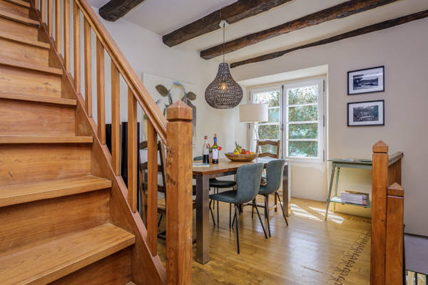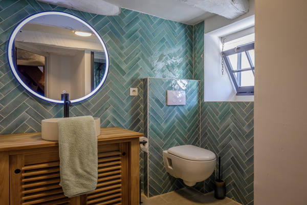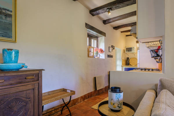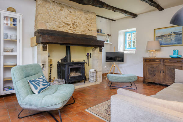 Binnen wordt u verwelkomd door een warm en gezellig interieur. De comfortabele woonkamer nodigt uit tot lange avonden bij de kachel, al is deze meestal nauwelijks nodig dankzij het aangename klimaat. In de goed uitgeruste keuken met fijne eettafel bereidt u met gemak een heerlijke Franse maaltijd. Vanuit de keuken stapt u zo het terras op, perfect om samen te genieten van lunch of diner in de buitenlucht.