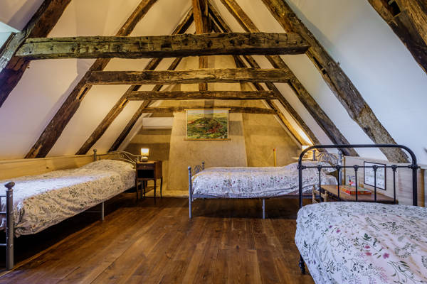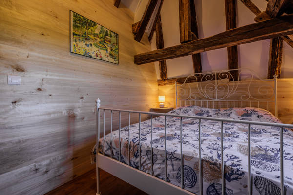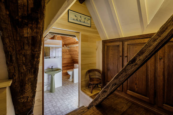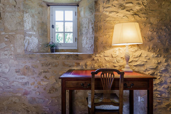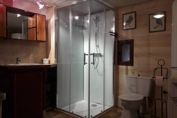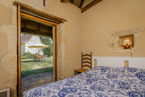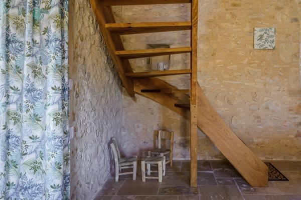 Op de begane grond bieden twee onafhankelijke kleine slaapkamers en hun badkamer u de mogelijkheid om 's ochtends of laat nog te zwemmen zonder de anderen te storen. In het huis, boven, zijn er nog twee slaapkamers met airconditioning en houten scheidingswanden die u onderdompelen in een warme sfeer. Er is een eenvoudige (vrij lage) douche voor deze beide slaapkamers boven. De bescheiden stenen buitentrap leidt naar de ingerichte keuken, de lemen eetkamer en de comfortabele woonkamer voorzien van een scherm bij de open haard.